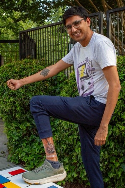 Nikhil: “I got into Eric’s Lyft right after having gotten my fifth tattoo, I was debating taking the Metro that day but I was feeling sore after my session and was wanting to just kick back. Eric was friendly and inquisitive, something about the way he spoke clued me in that he might be from New York City. Sometimes I would say something during our conversation and Eric would pause, I thought maybe I had offended or confused him but I think he was just wanting to take a moment to consider what I said carefully. When Eric asked me about my tattoos we bonded right away around the knot of eternity which I have tattooed on my arm and that Eric had on his necklace. I was a bit embarrassed to tell the story of my new tattoo because I wasn’t sure if it would seem silly to someone that I got a tattoo based on a video game. But Eric was more curious and not judgmental. I am grateful for this opportunity to sit longer with this small stretch of my life. It reminds me of the Buddhist concept of ‘three thousand realms in a single moment of life,’ when you are truly present every second of life can contain eternity.”